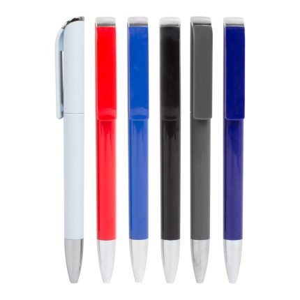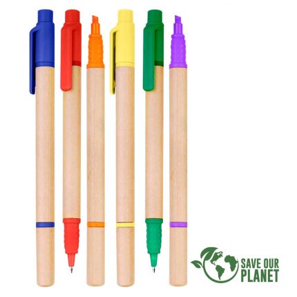 Bolígrafo Ecológico con cuerpo de cartón reciclado de color, con terminales de plástico de color PET biodegradable. Escritura Azul.