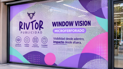 El adhesivo Window Vision, también conocido como vinilo microperforado, es la solución perfecta para publicidad en vidrios y ventanas. Permite mostrar imágenes y gráficos a todo color hacia el exterior, mientras mantiene visibilidad desde el interior, sin perder luminosidad.