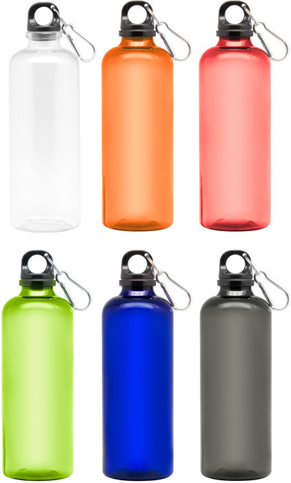 Botella de aluminio con manija de agarre en la tapa, sorbete plástico y boquilla rebatible. Tapa a rosca de plástico.